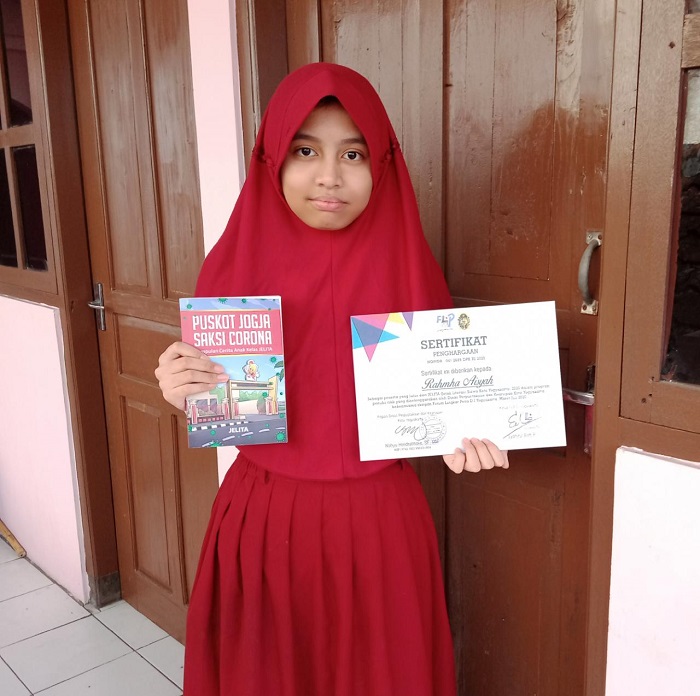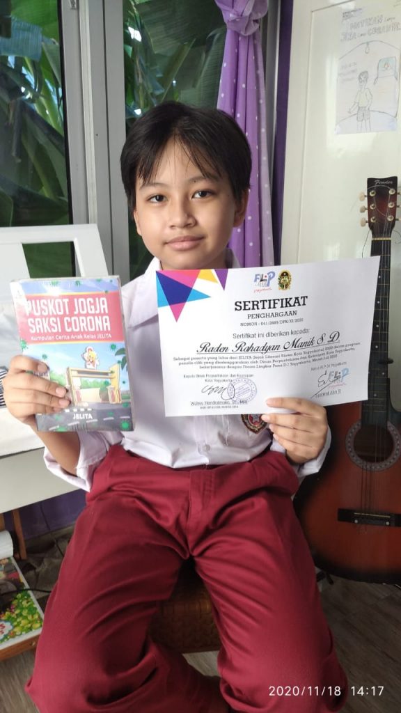 Masa pandemi Corona tidak menyurutkan semangat siswa SDN Serayu untuk tetap berkarya. Setelah mengikuti pelatihan menulis JELITA (Jejak Literasi Siswa Kota Yogyakarta), Rahma Aisyah dan R. Rahadyan Manik berkesempatan menuangkan karya mereka di dalam buku antologi cerita anak “PUSKOT JOGJA SAKSI CORONA”. Narasi antologi ini diinisiasi oleh Dinas Perpustakaan dan Kearsipan Kota Yogyakarta dan diikuti 43 siswa dari beberapa sekolah dasar di Kota Yogyakarta.